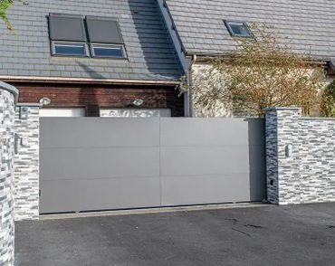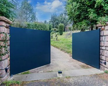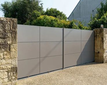 Klavel is a true thoroughbred, this is an aluminium panel assembled with space age, aviation grade tape to give a totally flush finish. Offered as standard with 3 equal sized ribs, we have ordered it for clients with 4 ribs to match a high specification entrance door. This gate is part of the Architects range and it does have a companion fence. There are a number of companion styles with a mix of horizontal and vertically arranged panels, please just enquire.